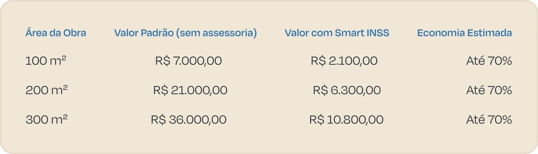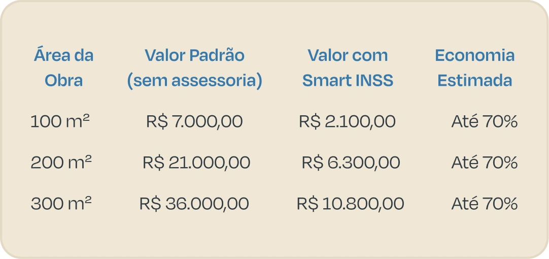 Você pode reduzir até 70% do valor do INSS da sua obra com o apoio da Smart INSS. Regularize seu imóvel pagando apenas o que é justo, de forma 100% legal, segura e descomplicada.